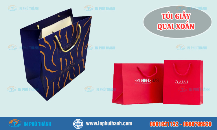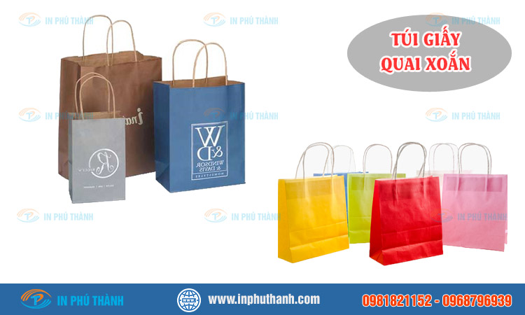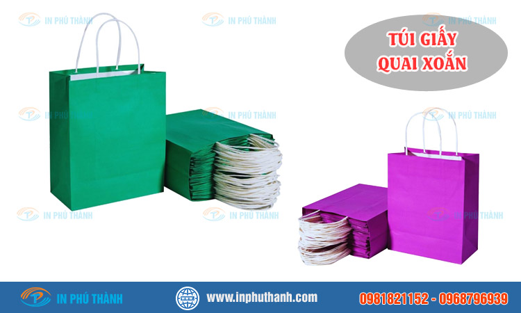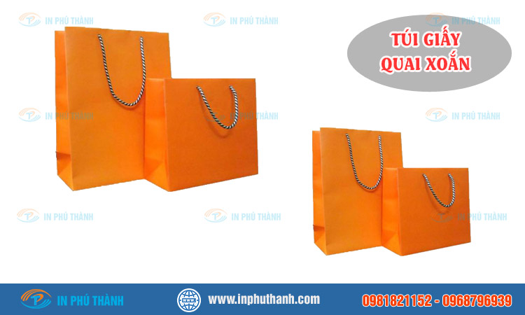 In Phú Thành là công ty chuyên thiết kế và in túi giấy giá rẻ theo yêu cầu, trong đó có túi giấy quai xoắn với nhiều kích thước và mẫu mã đa dạng, đáp ứng đầy đủ như cầu sử dụng của quý khách hàng. Nếu có nhu cầu về in túi giấy, các bạn có thể liên hệ với chúng tôi qua hotline: 0904.932.052 – 0981.821.152
